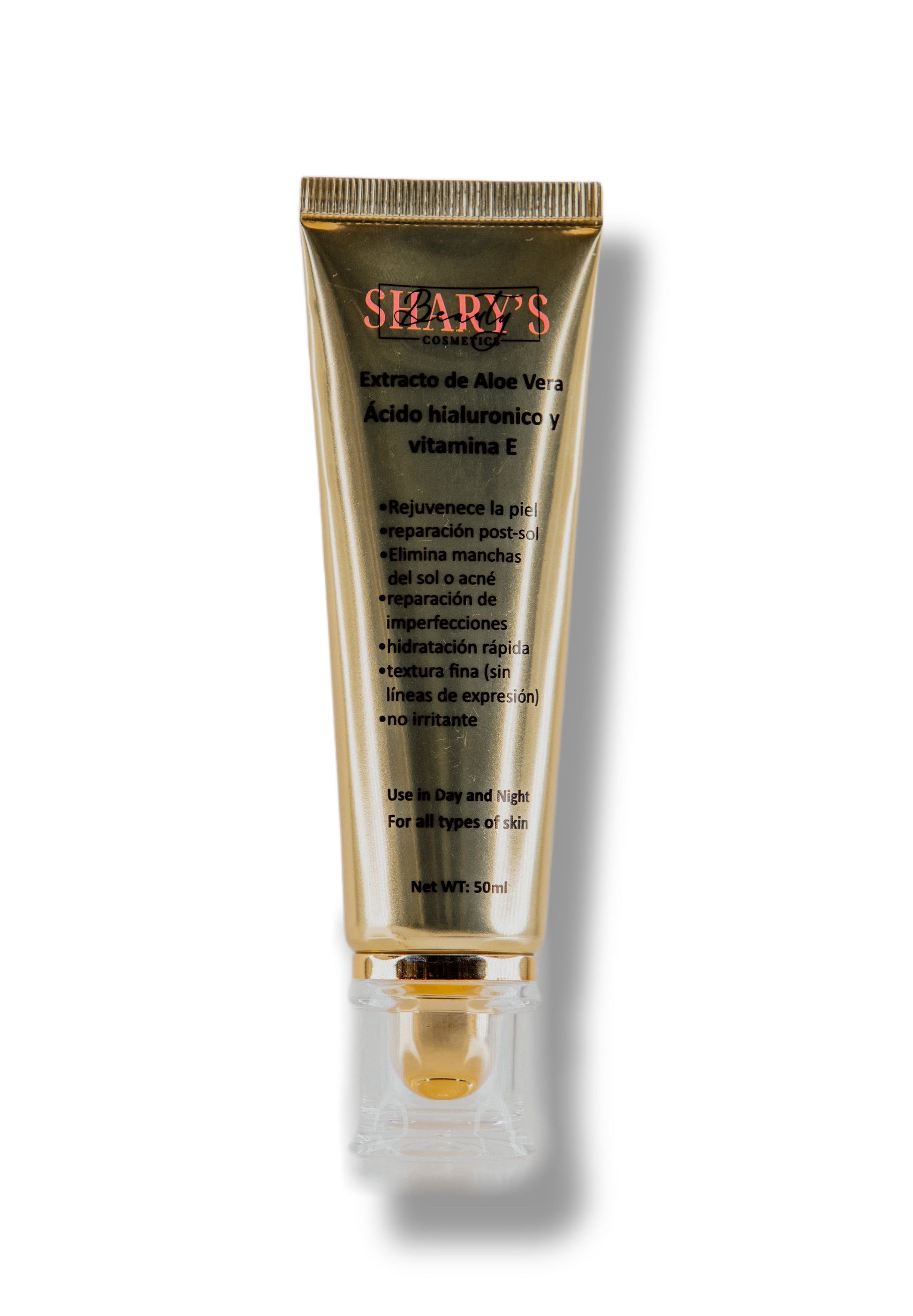 Extracto de Aloe Vera con ácido hialuronico y vitamina E.